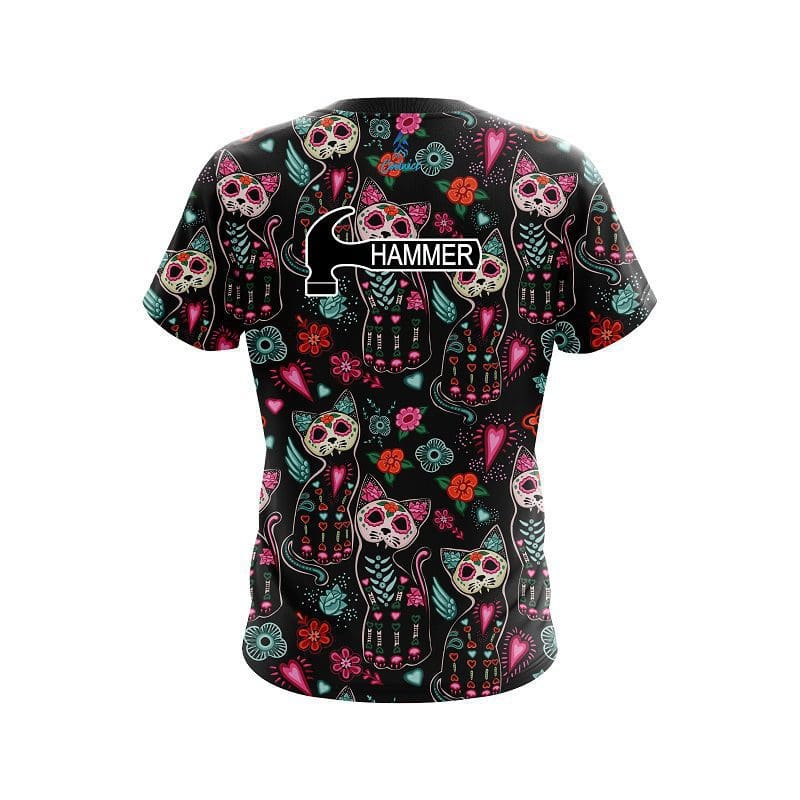 Stay 40% cooler with CoolWick. Our Hammer Day Of The Dead Cats CoolWick Bowling Jerseys are made of two different fabrics with the back being our CoolWick technology fabric that helps wick moisture away and helps air flow more easily through the fibers.