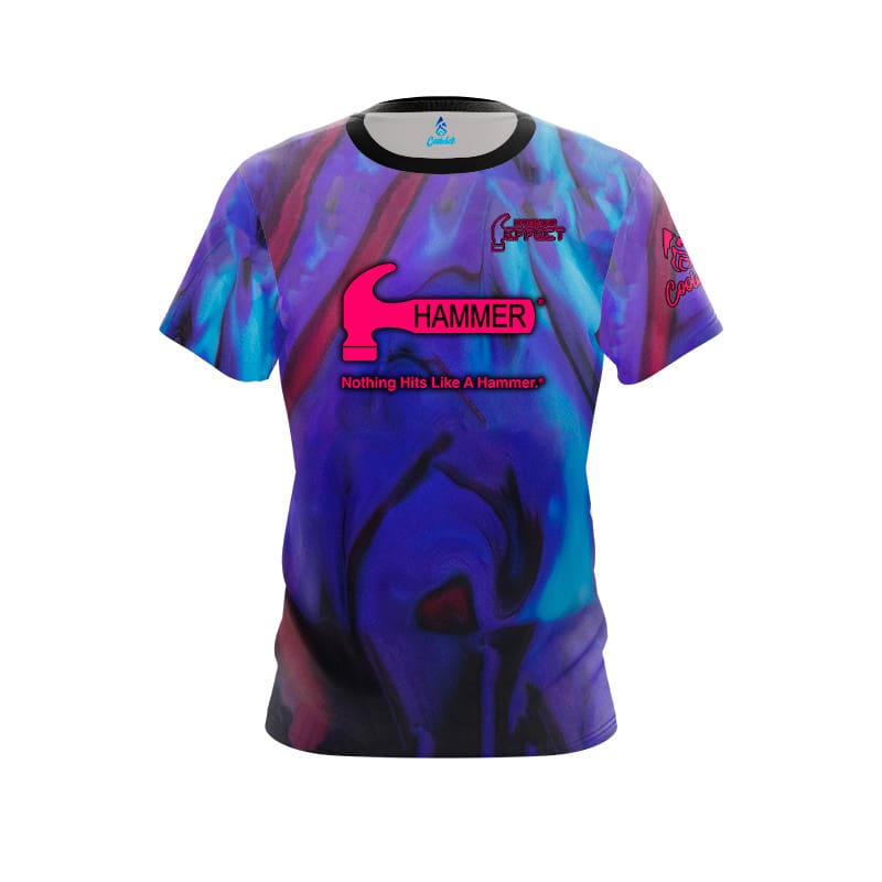 But it’s not just about functionality, this eye-catching design boasts vibrant colors that are sure to turn heads. It perfectly complements the iconic look of Hammer Bowling’s latest release, the Hammer Effect bowling ball. Crafted with uncompromising precision right here in the USA, this jersey is a symbol of superior quality and craftsmanship.