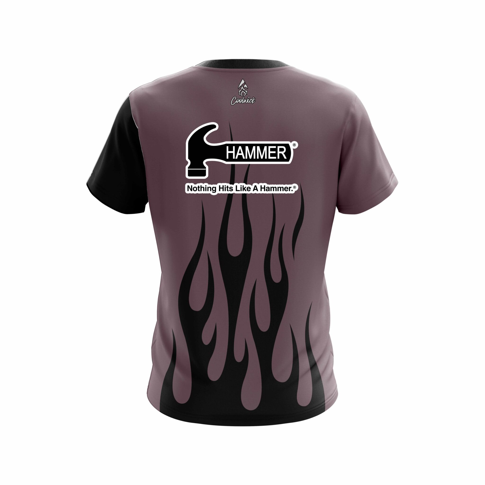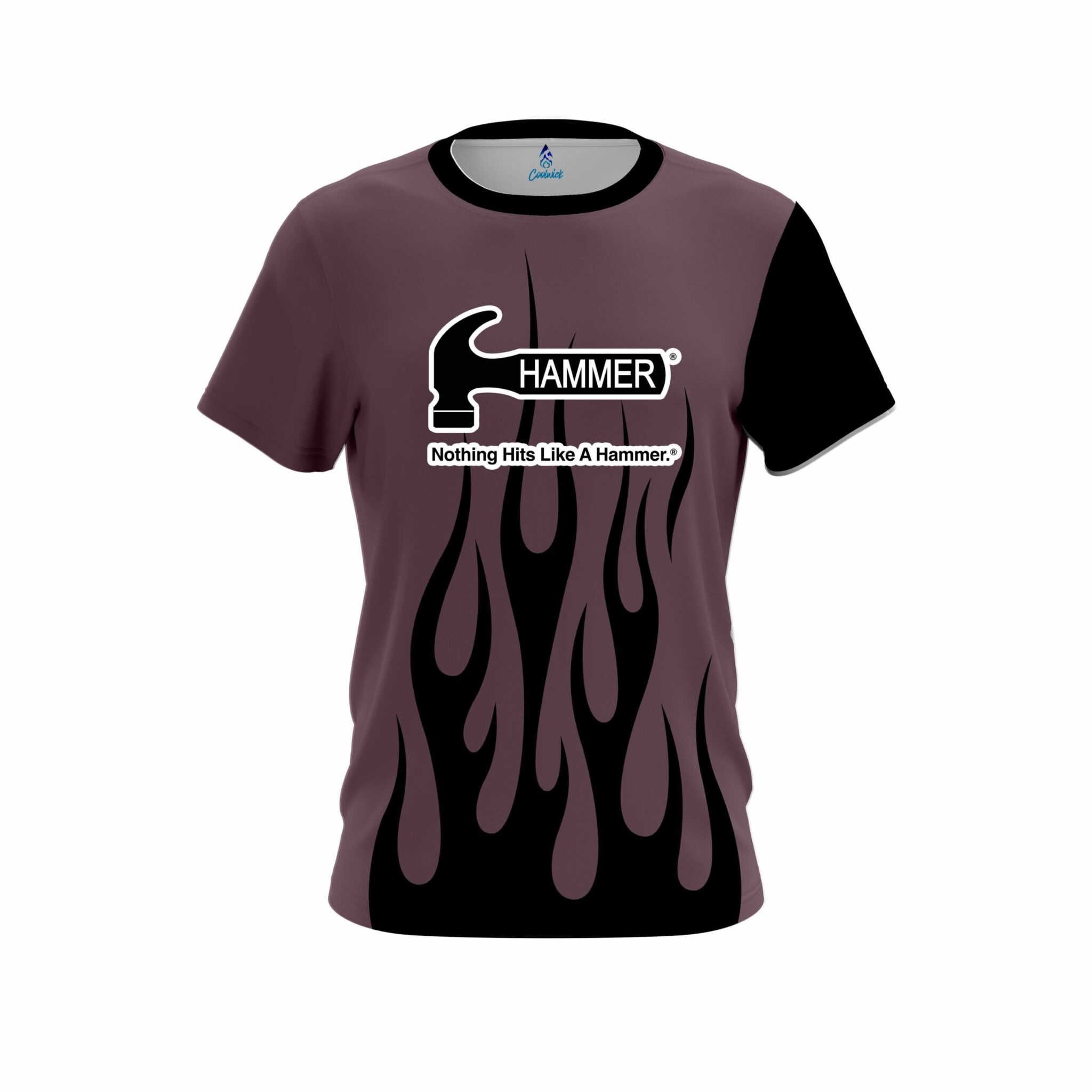 Stay 40% cooler with CoolWick. Our Hammer Eggplant Flaming CoolWick Bowling Jerseys are made of two different fabrics with the back being our CoolWick technology fabric that helps wick moisture away and helps air flow more easily through the fibers.