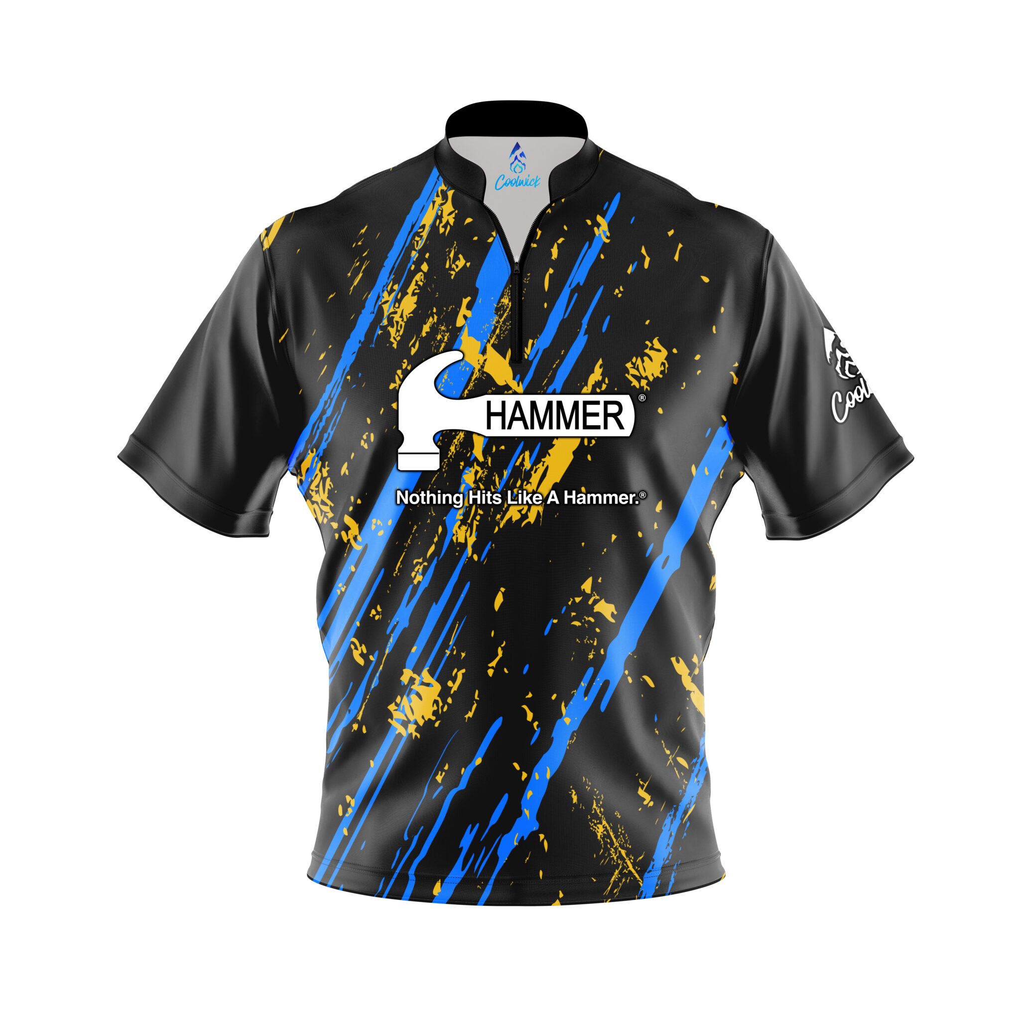 Stay 40% cooler with CoolWick. Our Hammer Gold Coal Quick Ship CoolWick Sash Zip Bowling Jerseys are made of CoolWick technology fabric that helps wick moisture away and helps air flow more easily through the fibers.