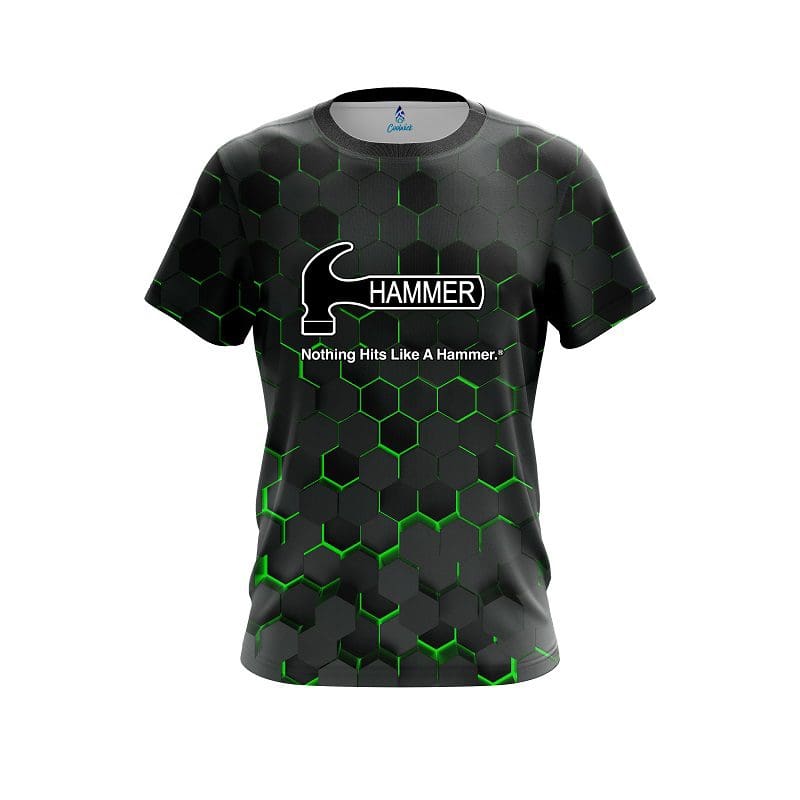 Stay 40% cooler with CoolWick. Our Hammer Green Honeycomb Fusion CoolWick Bowling Jerseys are made of two different fabrics with the back being our CoolWick technology fabric that helps wick moisture away and helps air flow more easily through the fibers.