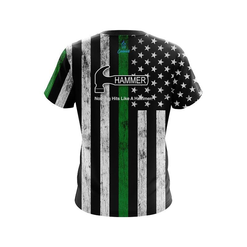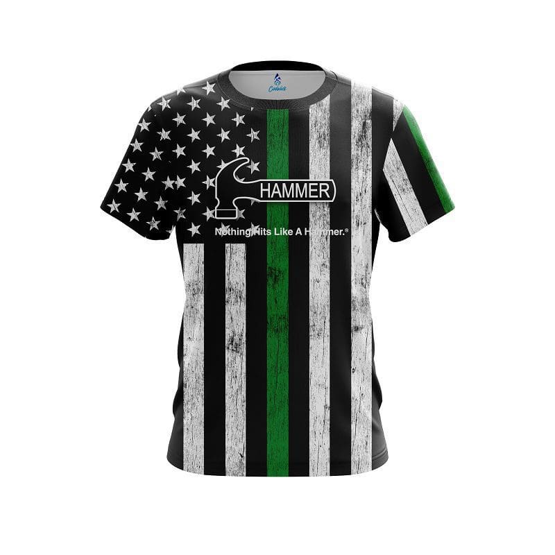 Stay 40% cooler with CoolWick. Our Hammer Green Line CoolWick Bowling Jerseys are made of two different fabrics with the back being our CoolWick technology fabric that helps wick moisture away and helps air flow more easily through the fibers.