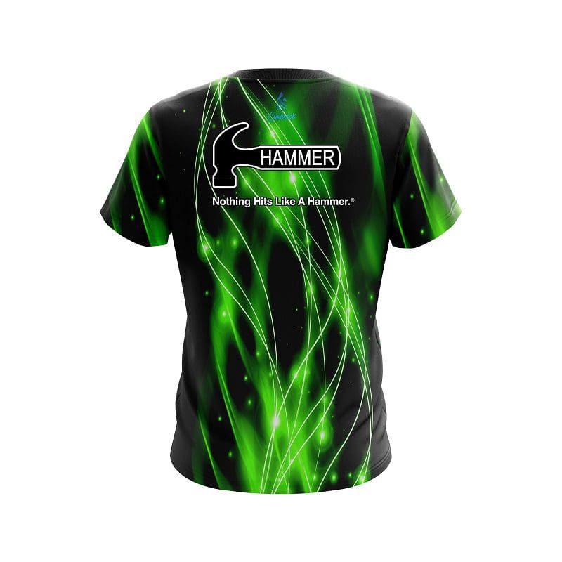 Stay 40% cooler with CoolWick. Our Hammer Green Spiral Waves CoolWick Bowling Jerseys are made of two different fabrics with the back being our CoolWick technology fabric that helps wick moisture away and helps air flow more easily through the fibers.