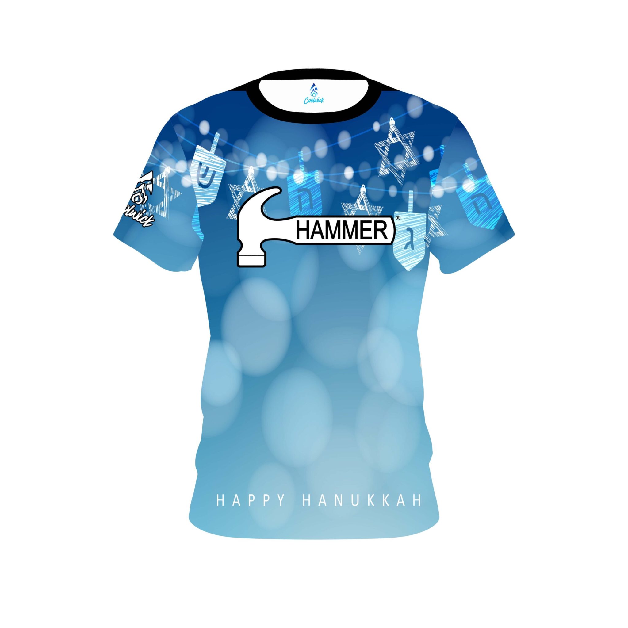 Stay 40% cooler with CoolWick. Our Hammer Hanukkah Holiday Time Coolwick Bowling Jerseys are made of two different fabrics with the back being our CoolWick technology fabric that helps wick moisture away and helps air flow more easily through the fibers.