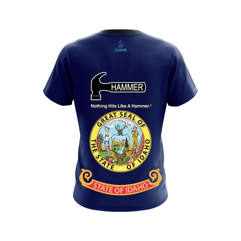 Stay 40% cooler with CoolWick. Our Hammer Idaho Flag CoolWick Bowling Jersey are made of two different fabrics with the back being our CoolWick technology fabric that helps wick moisture away and helps air flow more easily through the fibers.