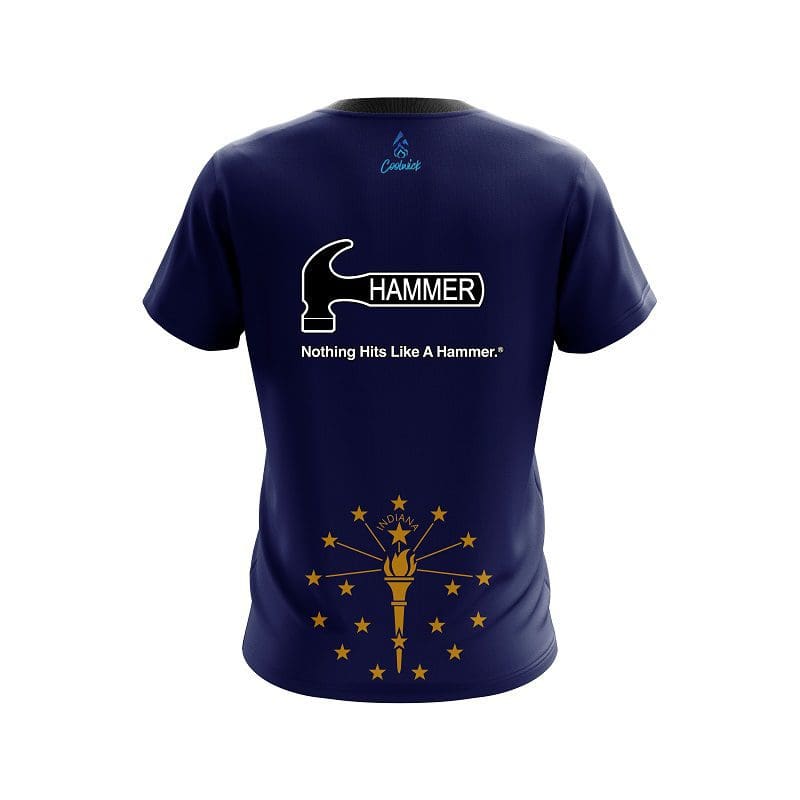 Stay 40% cooler with CoolWick. Our Hammer Indiana Flag CoolWick Bowling Jersey are made of two different fabrics with the back being our CoolWick technology fabric that helps wick moisture away and helps air flow more easily through the fibers.