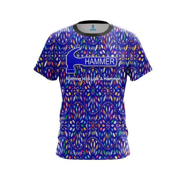 Stay 40% cooler with CoolWick. Our Hammer Kaleidoscope Blue CoolWick Bowling Jerseys are made of two different fabrics with the back being our CoolWick technology fabric that helps wick moisture away and helps air flow more easily through the fibers.