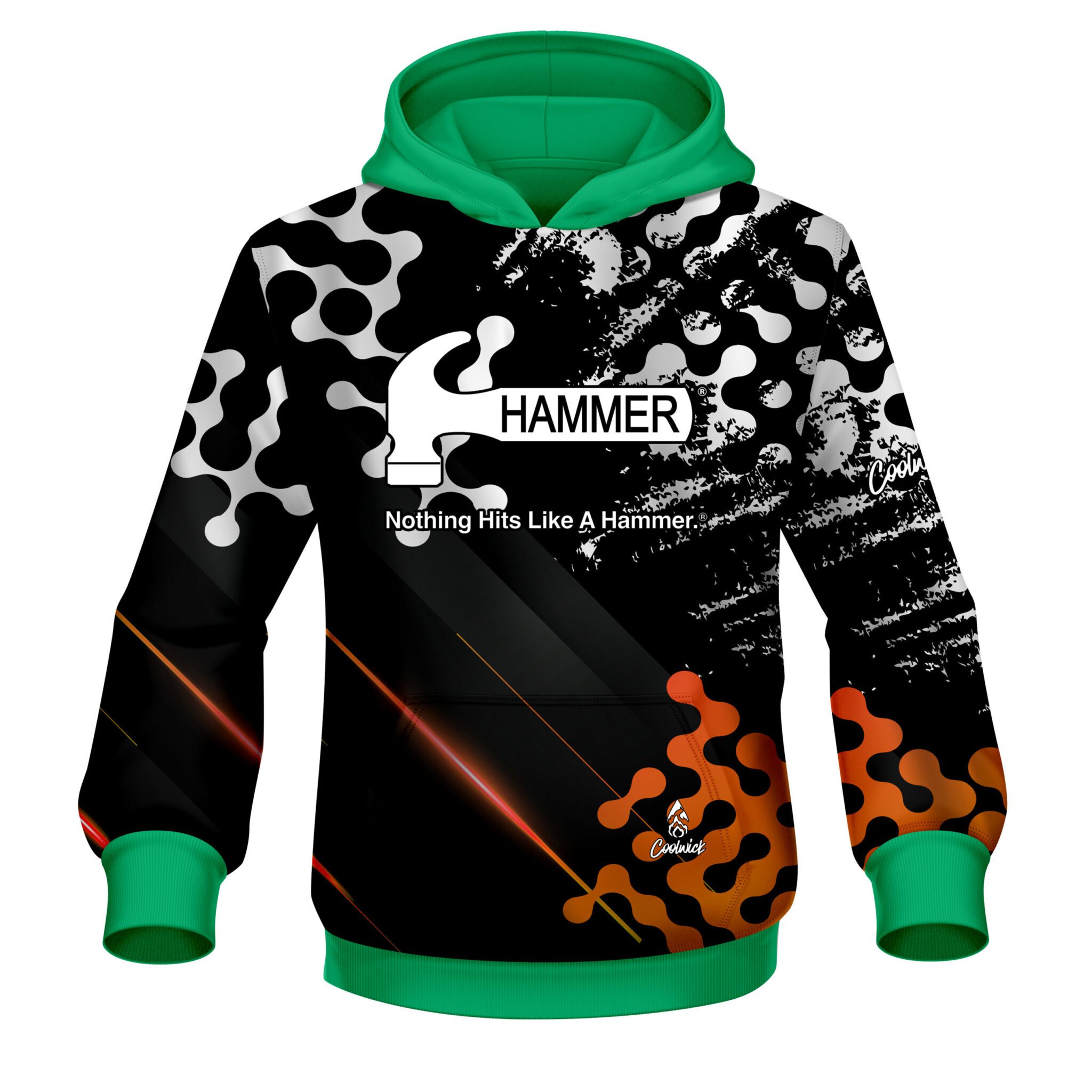 Designed, cut and sewn by hand our Hammer Level Up Orange CoolWick Bowling Hoodies are made to keep you warm and comfy with HD graphics and eye-catching style.