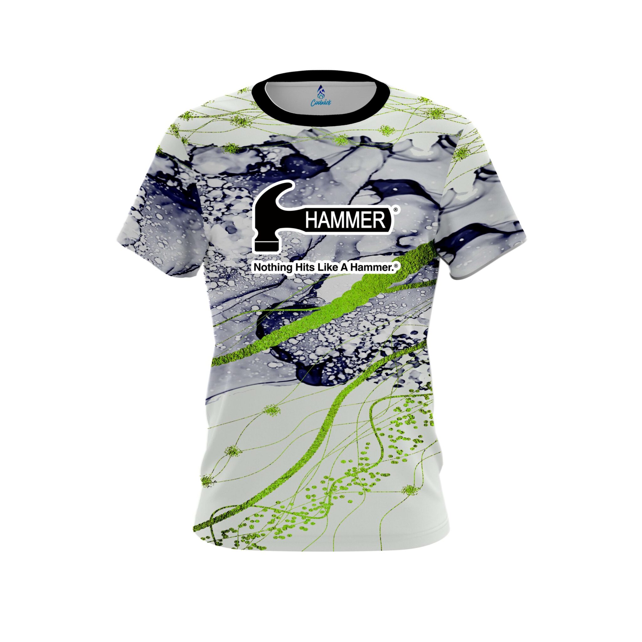 Stay 40% cooler with CoolWick. Our Hammer Lime Green Granite CoolWick Bowling Jerseys are made of two different fabrics with the back being our CoolWick technology fabric that helps wick moisture away and helps air flow more easily through the fibers.