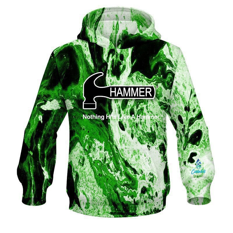 Designed, cut and sewn by hand, our Hammer Marble Green CoolWick Bowling Hoodies are made to keep you warm and comfy with HD graphics and eye-catching style.
