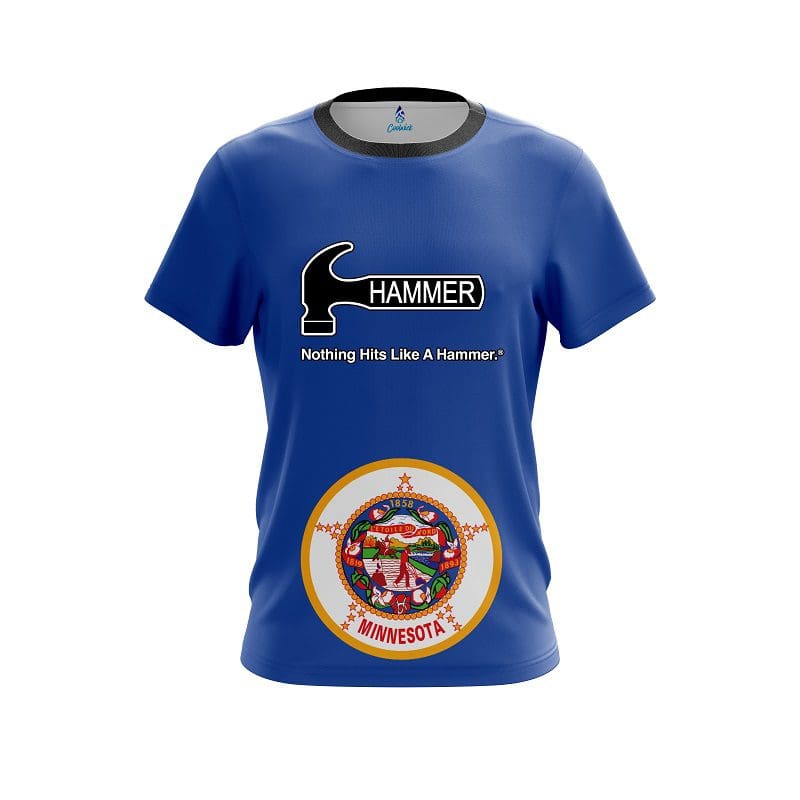 Stay 40% cooler with CoolWick. Our Hammer Minnesota Flag CoolWick Bowling Jersey are made of two different fabrics with the back being our CoolWick technology fabric that helps wick moisture away and helps air flow more easily through the fibers.