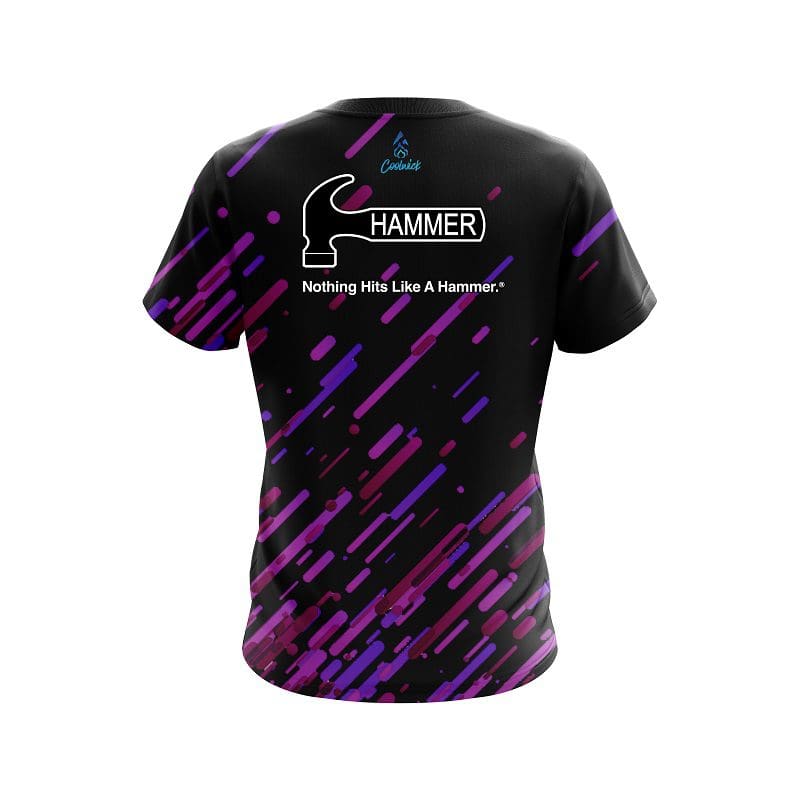 Stay 40% cooler with CoolWick. Our Hammer Modern Purple Stripe CoolWick Bowling Jerseys are made of two different fabrics with the back being our CoolWick technology fabric that helps wick moisture away and helps air flow more easily through the fibers.