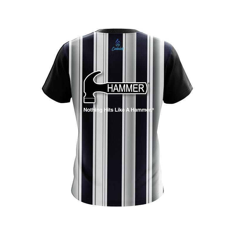 Stay 40% cooler with CoolWick. Our Hammer Navy Blue And Silver Retro CoolWick Bowling Jerseys are made of two different fabrics with the back being our CoolWick technology fabric that helps wick moisture away and helps air flow more easily through the fibers.