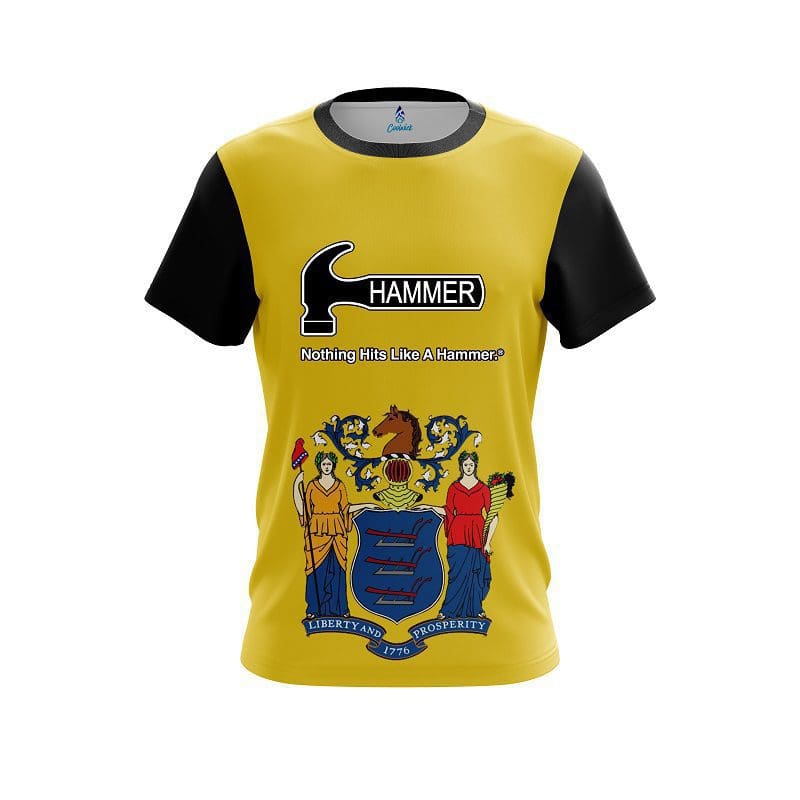 Stay 40% cooler with CoolWick. Our Hammer New Jersey Flag CoolWick Bowling Jersey are made of two different fabrics with the back being our CoolWick technology fabric that helps wick moisture away and helps air flow more easily through the fibers.