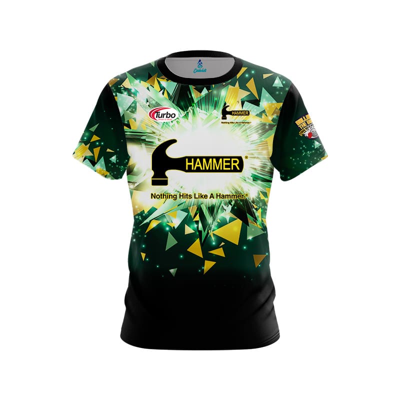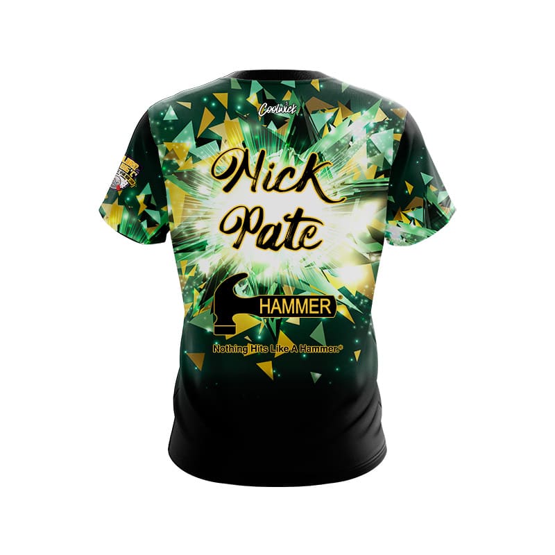 Bowl like the pros with our signature replica jerseys! Introducing the Hammer Nick Pate Green Yellow Triangle Blast CoolWick Bowling Jersey – designed with innovative fabrics for superior performance. Our dye-sublimated replica bowling jersey features the cutting-edge CoolWick technology fabric. You will be staying 40% cooler as it efficiently wicks away moisture and improves airflow.