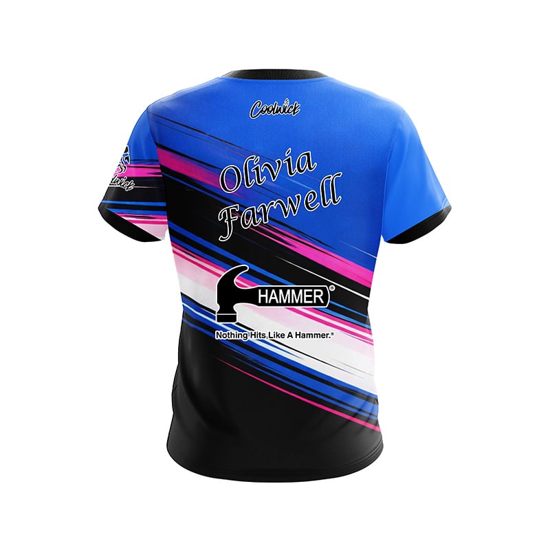 Gear up for a remarkable experience of performance, comfort, and style all rolled into one! Introducing the breathtaking Hammer Olivia Farwell Blue Pink Sport CoolWick Bowling Jersey – meticulously crafted with the latest custom design by CoolWick Staffer, Olivia Farwell!