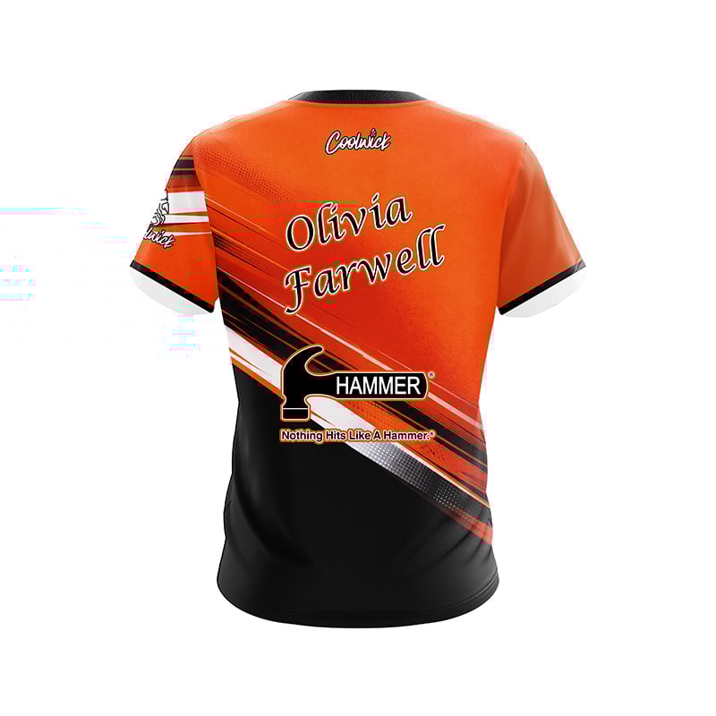 Gear up for a remarkable experience of performance, comfort, and style all rolled into one! Introducing the breathtaking Hammer Olivia Farwell Orange Black Sport CoolWick Bowling Jersey – meticulously crafted with the latest custom design by CoolWick Staffer, Olivia Farwell!
