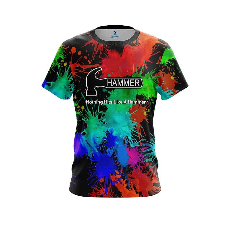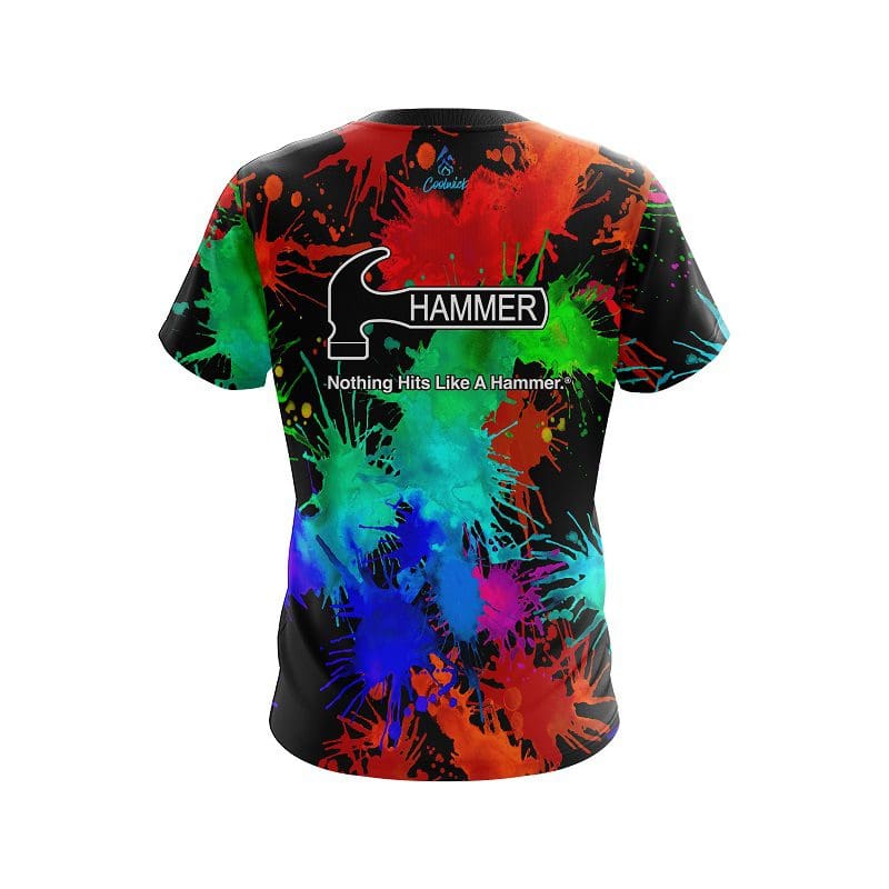 Stay 40% cooler with CoolWick. Our Hammer Paint Splatter CoolWick Bowling Jerseys are made of two different fabrics with the back being our CoolWick technology fabric that helps wick moisture away and helps air flow more easily through the fibers.