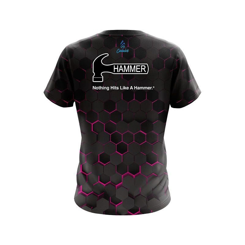 Stay 40% cooler with CoolWick. Our Hammer Pink Honeycomb Fusion CoolWick Bowling Jerseys are made of two different fabrics with the back being our CoolWick technology fabric that helps wick moisture away and helps air flow more easily through the fibers.