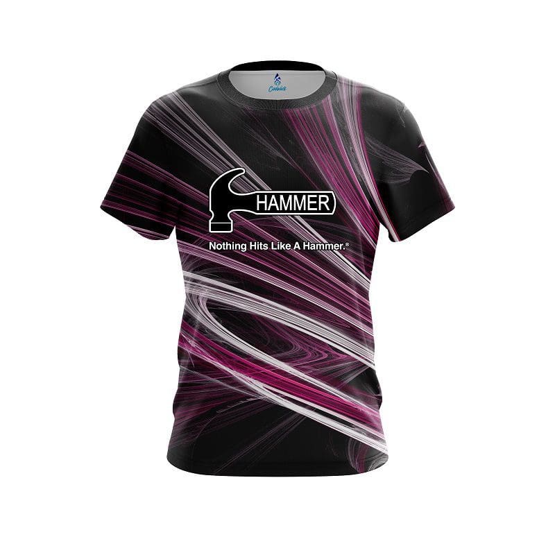 Stay 40% cooler with CoolWick. Our Hammer Pink Motion Swirl CoolWick Bowling Jerseys are made of two different fabrics with the back being our CoolWick technology fabric that helps wick moisture away and helps air flow more easily through the fibers.