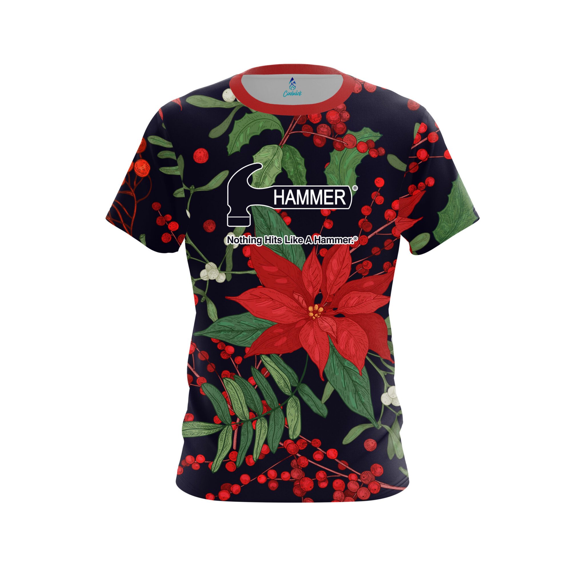 Stay 40% cooler with CoolWick. Our Hammer Poinsettia CoolWick Bowling Jersey are made of two different fabrics with the back being our CoolWick technology fabric that helps wick moisture away and helps air flow more easily through the fibers.