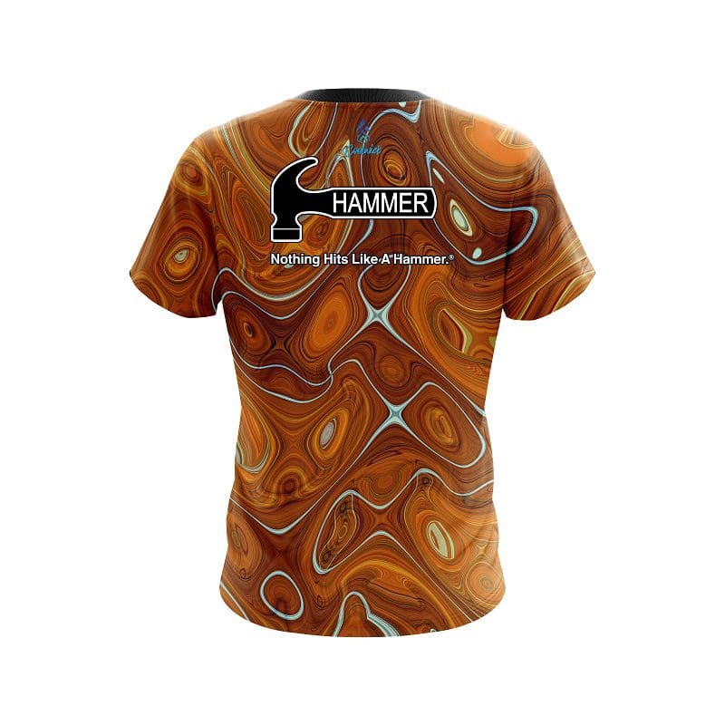 Stay 40% cooler with CoolWick. Our Hammer Psychedelic Orange Flow CoolWick Bowling Jerseys are made of two different fabrics with the back being our CoolWick technology fabric that helps wick moisture away and helps air flow more easily through the fibers.