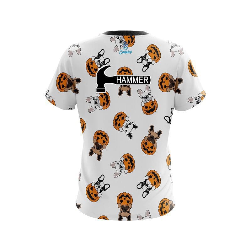 Stay 40% cooler with CoolWick. Our Hammer Pumpkin Puppy Patch CoolWick Bowling Jerseys are made of two different fabrics with the back being our CoolWick technology fabric that helps wick moisture away and helps air flow more easily through the fibers.