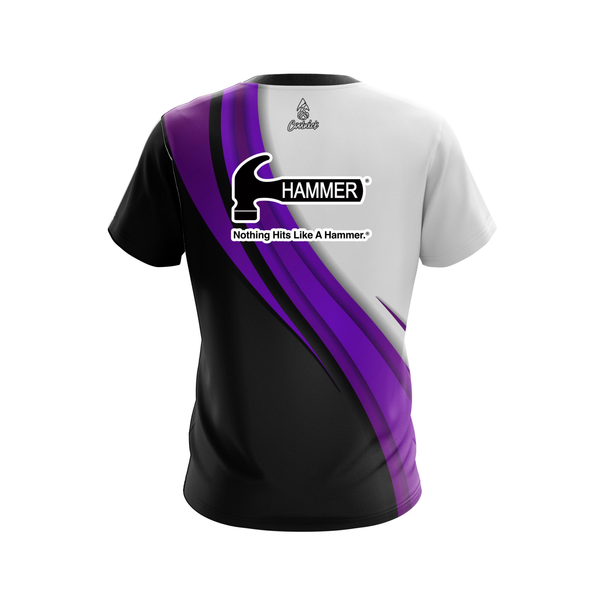 Stay 40% cooler with CoolWick. Our Hammer Purple Flutter CoolWick Bowling Jerseys are made of two different fabrics with the back being our CoolWick technology fabric that helps wick moisture away and helps air flow more easily through the fibers.