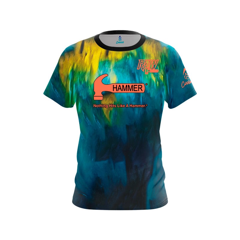 Introducing the Hammer Raw Hammer Smoke Blue Gold CoolWick Bowling Jersey. CoolWick is the premier choice for comfort and style in bowling sportswear. Crafted with precision this high quality jersey is made from lightweight, breathable fabric that keeps you cool and dry during intense competitions. Its advanced moisture-wicking technology effectively manages sweat ensuring comfort and focus throughout your performance.
