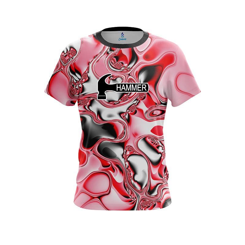 Stay 40% cooler with CoolWick. Our Hammer Red And White Liquid Canvas CoolWick Bowling Jerseys are made of two different fabrics with the back being our CoolWick technology fabric that helps wick moisture away and helps air flow more easily through the fibers.