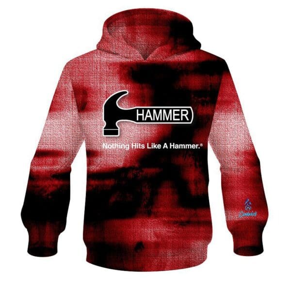 Designed, cut and sewn by hand our Hammer Red Canvas CoolWick Bowling Hoodies are made to keep you warm and comfy with HD graphics and eye catching style.