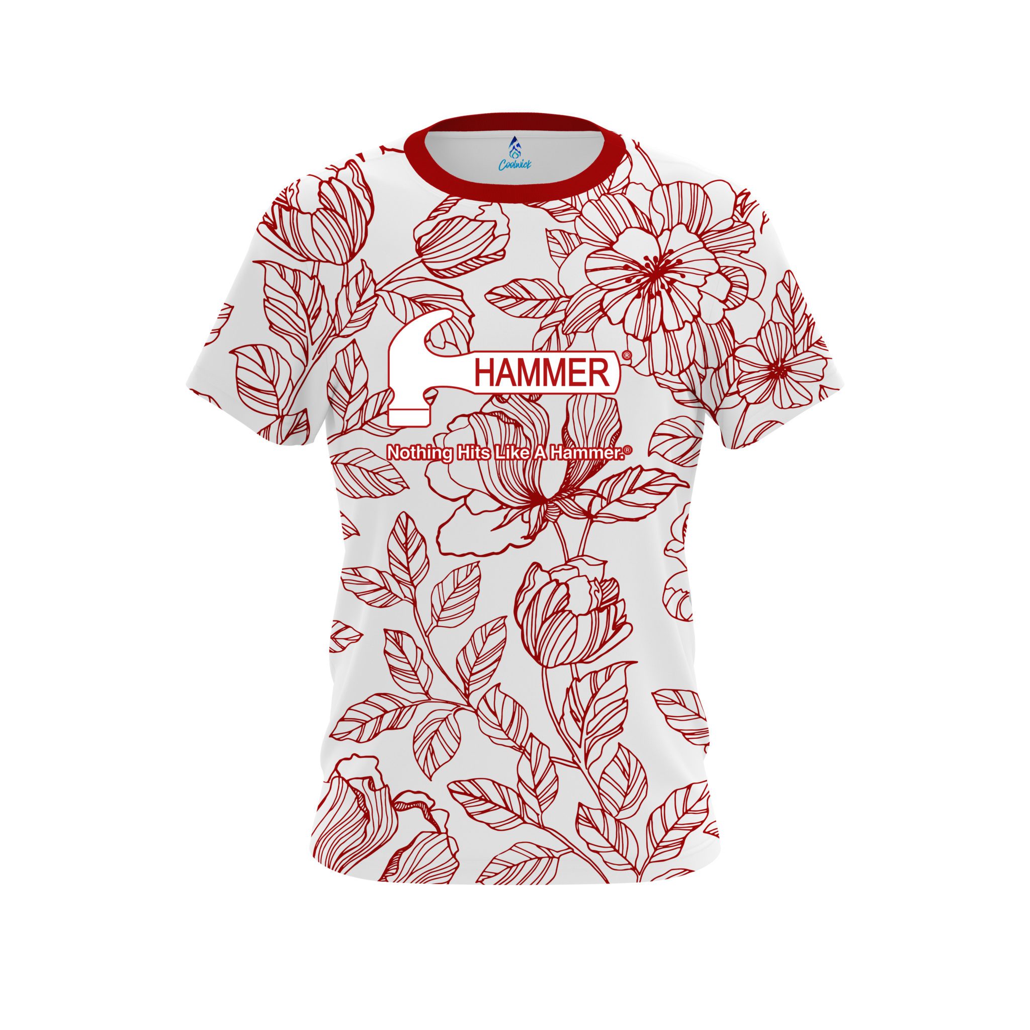 Stay 40% cooler with CoolWick. Our Hammer Red Flower Tattoo CoolWick Bowling Jerseys are made of two different fabrics with the back being our CoolWick technology fabric that helps wick moisture away and helps air flow more easily through the fibers.