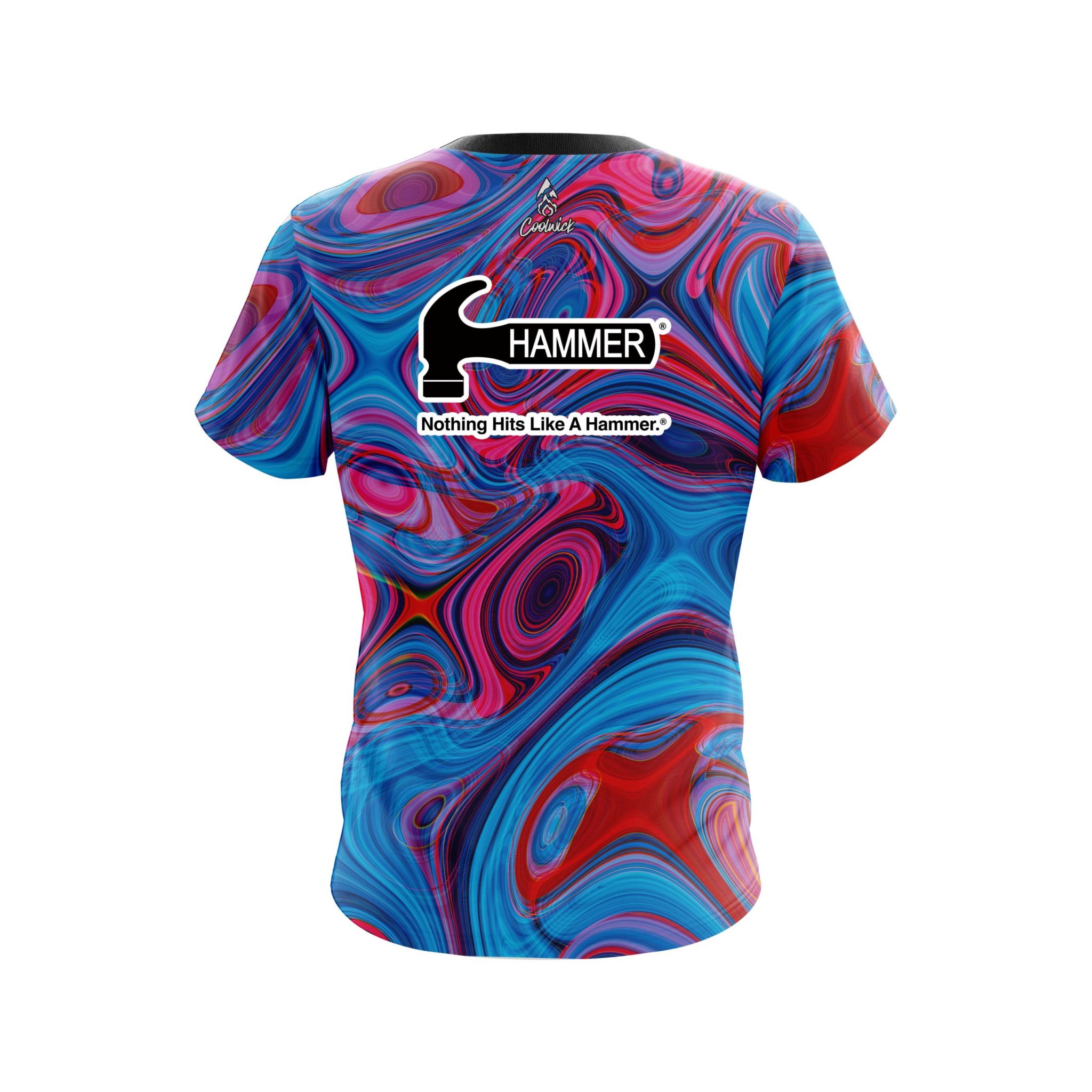 Stay 40% cooler with CoolWick. Our Hammer Red Pink Hallucinate CoolWick Bowling Jerseys are made of two different fabrics with the back being our CoolWick technology fabric that helps wick moisture away and helps air flow more easily through the fibers.