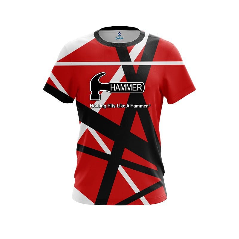 Stay 40% cooler with CoolWick. Our Hammer Rocker Red CoolWick Bowling Jerseys are made of two different fabrics with the back being our CoolWick technology fabric that helps wick moisture away and helps air flow more easily through the fibers.