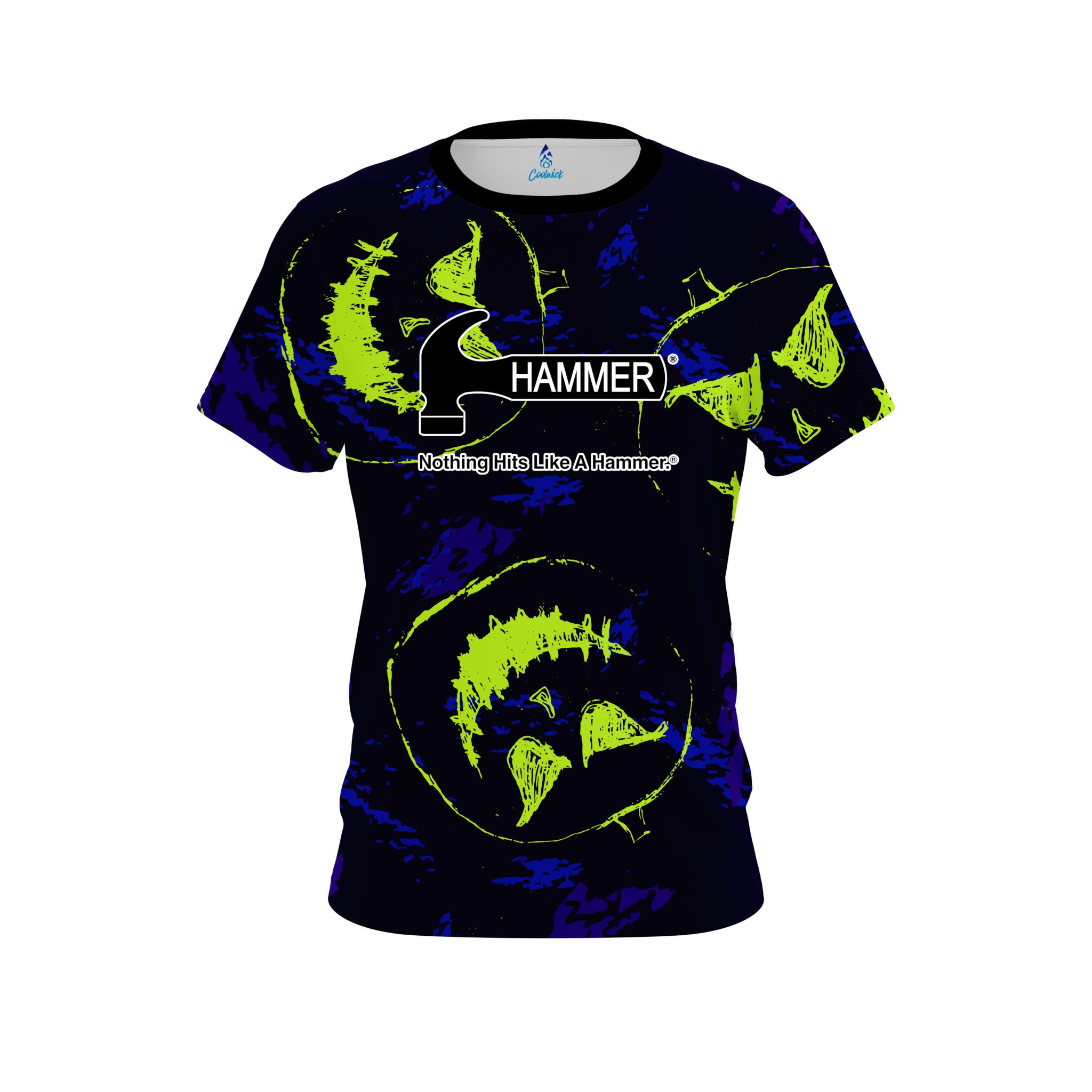 Stay 40% cooler with CoolWick. Our Hammer Sketchy Jack O’ Lantern CoolWick Bowling Jerseys are made of two different fabrics with the back being our CoolWick technology fabric that helps wick moisture away and helps air flow more easily through the fibers.