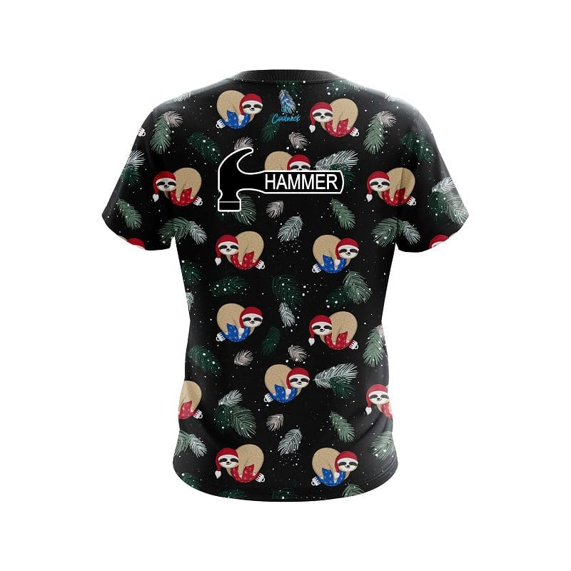 Stay 40% cooler with CoolWick. Our Hammer Sloths Christmas Time CoolWick Bowling Jerseys are made of two different fabrics with the back being our CoolWick technology fabric that helps wick moisture away and helps air flow more easily through the fibers.