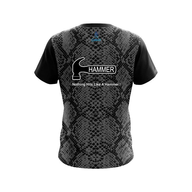 Stay 40% cooler with CoolWick. Our Hammer Snake Skin Black CoolWick Bowling Jersey are made of two different fabrics with the back being our CoolWick technology fabric that helps wick moisture away and helps air flow more easily through the fibers.