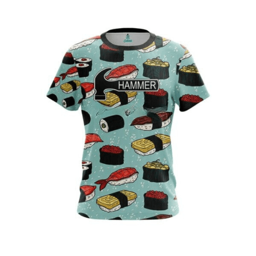 Stay 40% cooler with CoolWick. Our Hammer Sushi CoolWick Bowling Jerseys are made of two different fabrics. The back being our CoolWick technology fabric that helps wick moisture away and helps air flow more easily through the fibers.