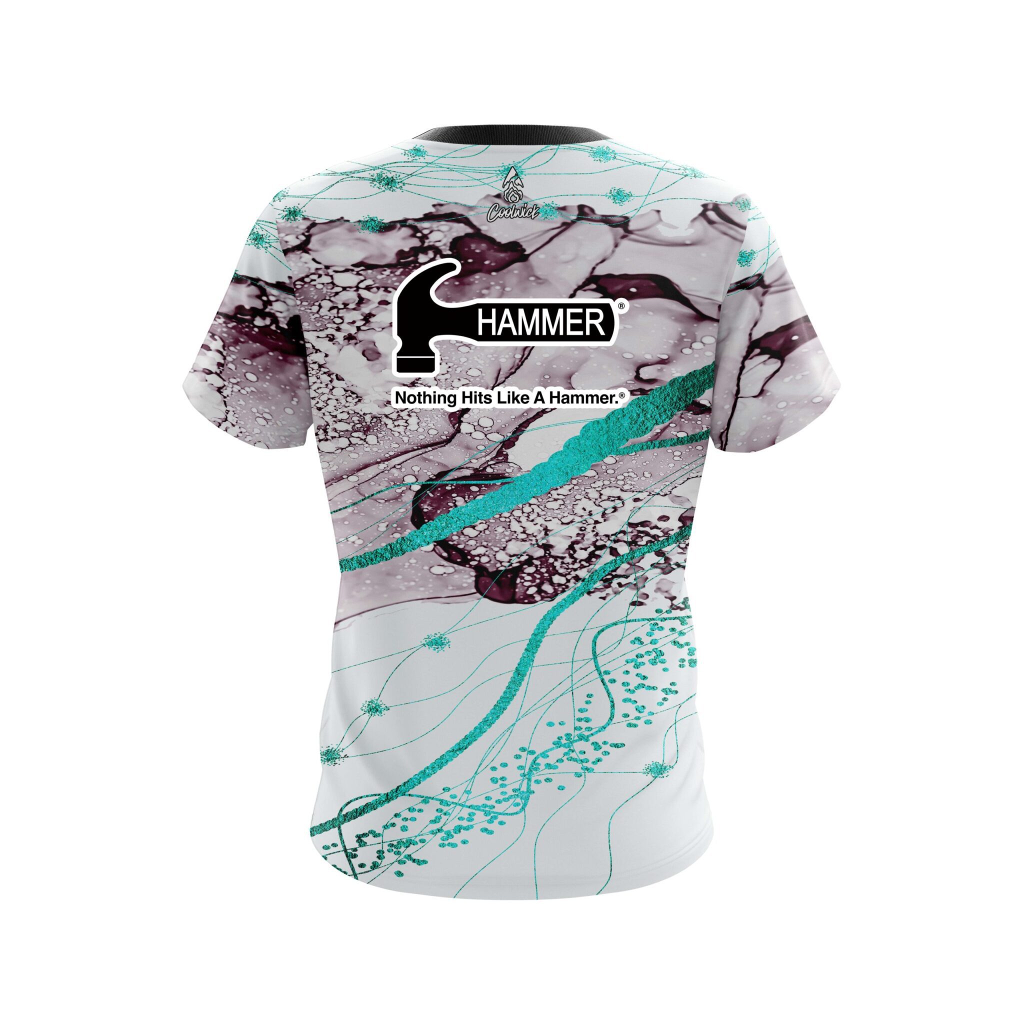 Stay 40% cooler with CoolWick. Our Hammer Teal Granite CoolWick Bowling Jerseys are made of two different fabrics with the back being our CoolWick technology fabric that helps wick moisture away and helps air flow more easily through the fibers.