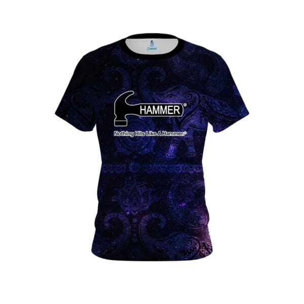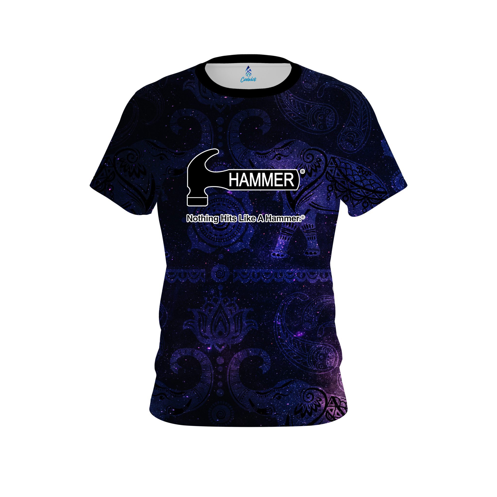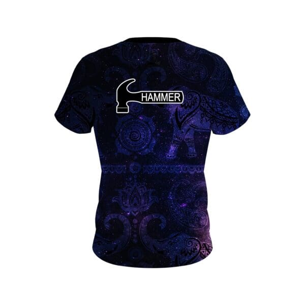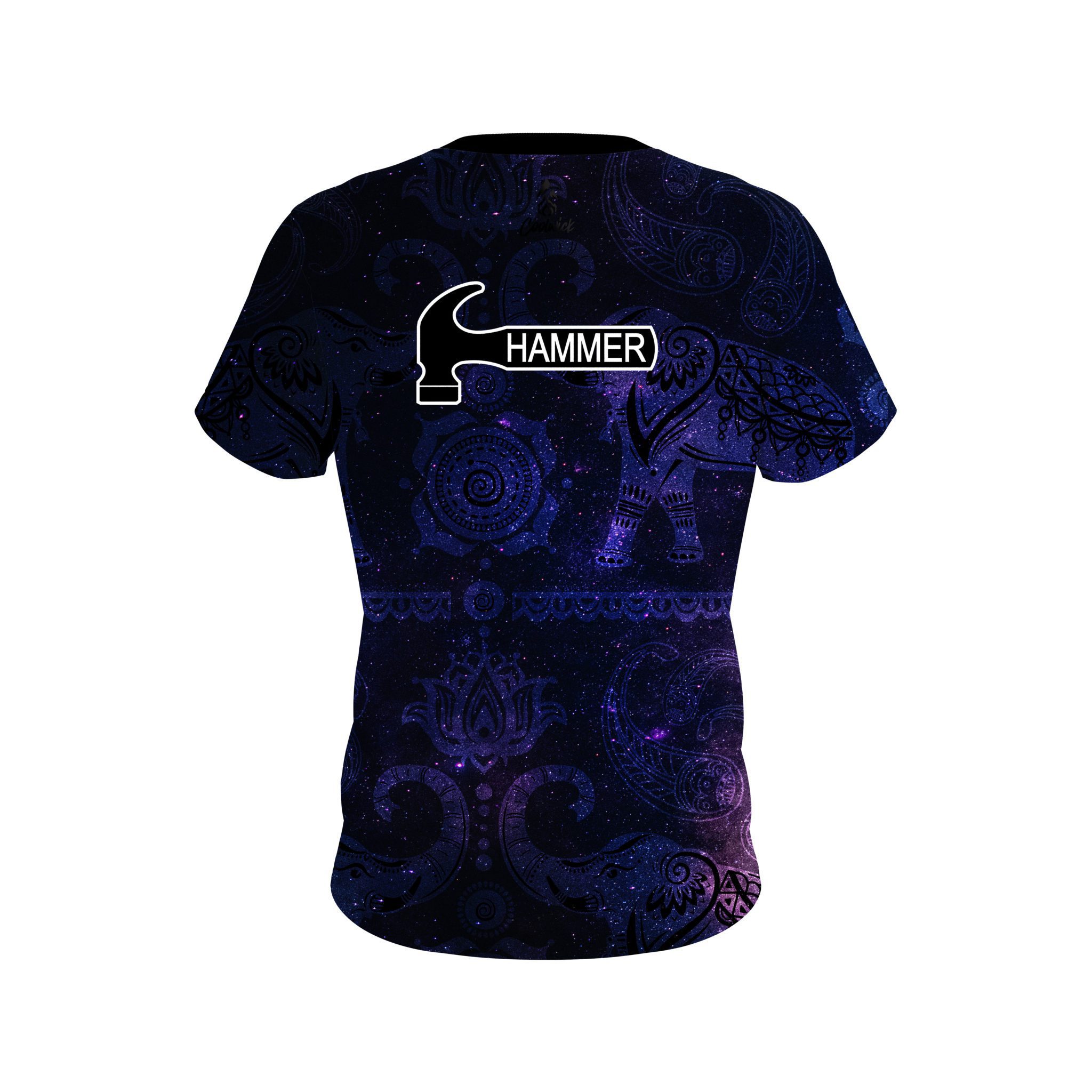 Stay 40% cooler with CoolWick. Our Hammer Tribal Elephants Galaxy CoolWick Bowling Jersey are made of two different fabrics with the back being our CoolWick technology fabric that helps wick moisture away and helps air flow more easily through the fibers.