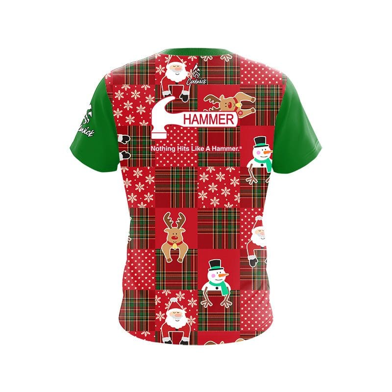 Stay 40% cooler with CoolWick. Our Hammer Ugly Sweater Christmas Quilt Holiday Time Bowling Jerseys are made of two different fabrics with the back being our CoolWick technology fabric that helps wick moisture away and helps air flow more easily through the fibers.
