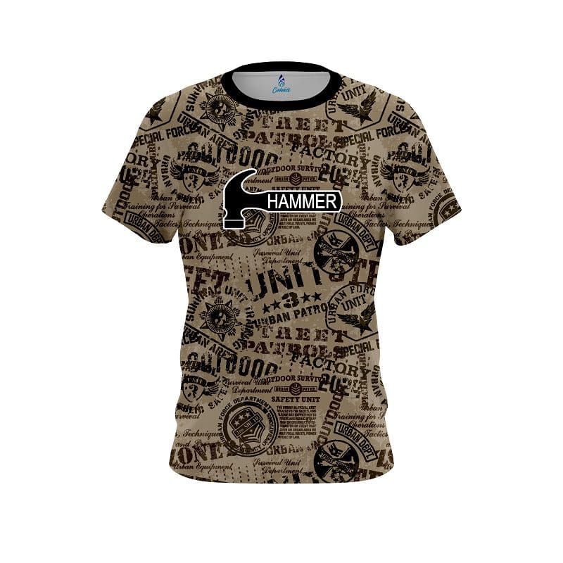 Stay 40% cooler with CoolWick. Our Hammer Urban Military Grunge CoolWick Bowling Jerseys are made of two different fabrics with the back being our CoolWick technology fabric that helps wick moisture away and helps air flow more easily through the fibers.