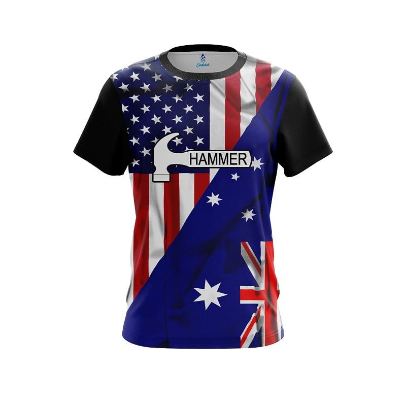 Stay 40% cooler with CoolWick. Our Hammer Australia Flag Bowling Jerseys are made of two different fabrics with the back being our CoolWick technology fabric that helps wick moisture away and helps air flow more easily through the fibers.