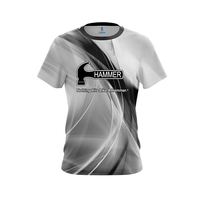 Stay 40% cooler with CoolWick. Our Hammer Wavy Black And White Swirl CoolWick Bowling Jerseys are made of two different fabrics with the back being our CoolWick technology fabric that helps wick moisture away and helps air flow more easily through the fibers.