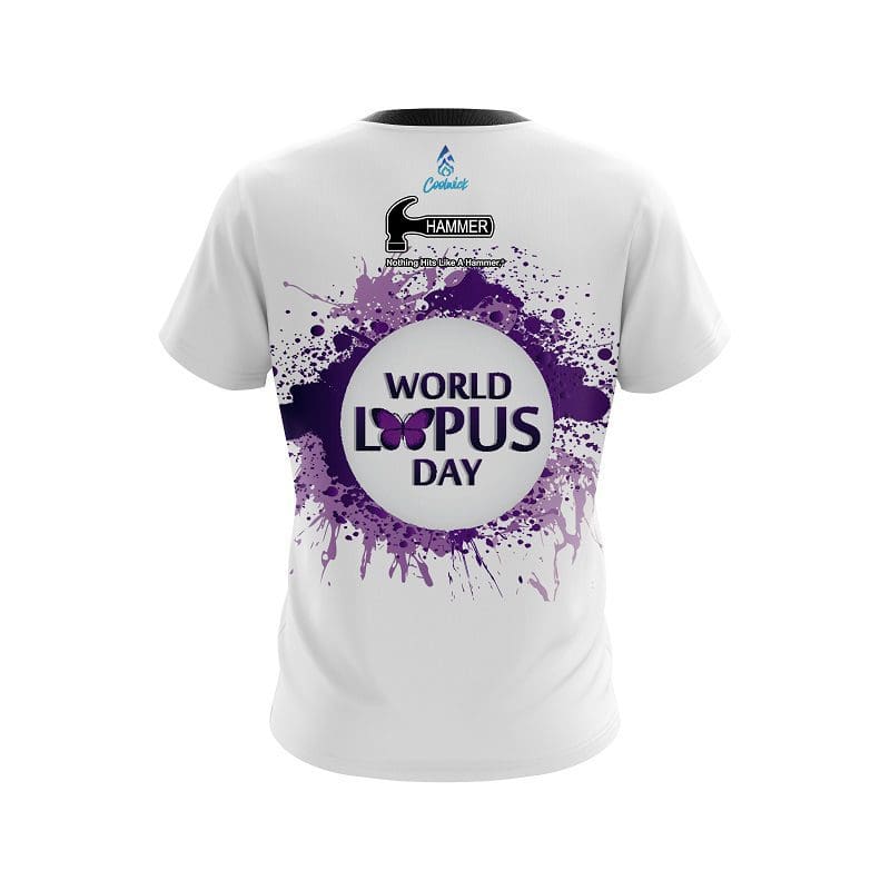 Stay 40% cooler with CoolWick. Our Hammer World Lupus Cancer Awareness 2 CoolWick Bowling Jerseys are made of two different fabrics with the back being our CoolWick technology fabric that helps wick moisture away and helps air flow more easily through the fibers.