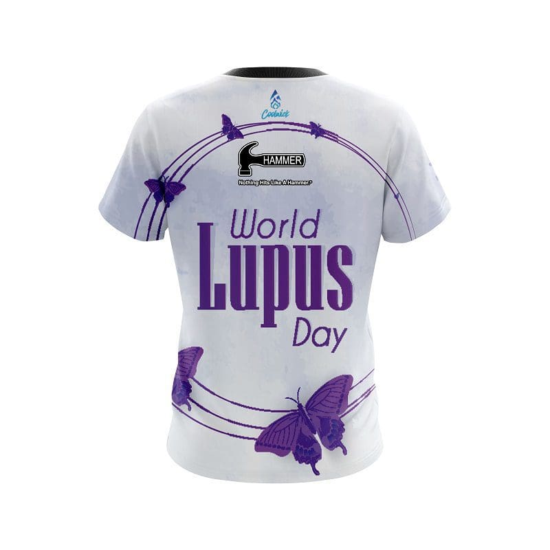 Stay 40% cooler with CoolWick. Our Hammer World Lupus Cancer Awareness 3 CoolWick Bowling Jerseys are made of two different fabrics with the back being our CoolWick technology fabric that helps wick moisture away and helps air flow more easily through the fibers.
