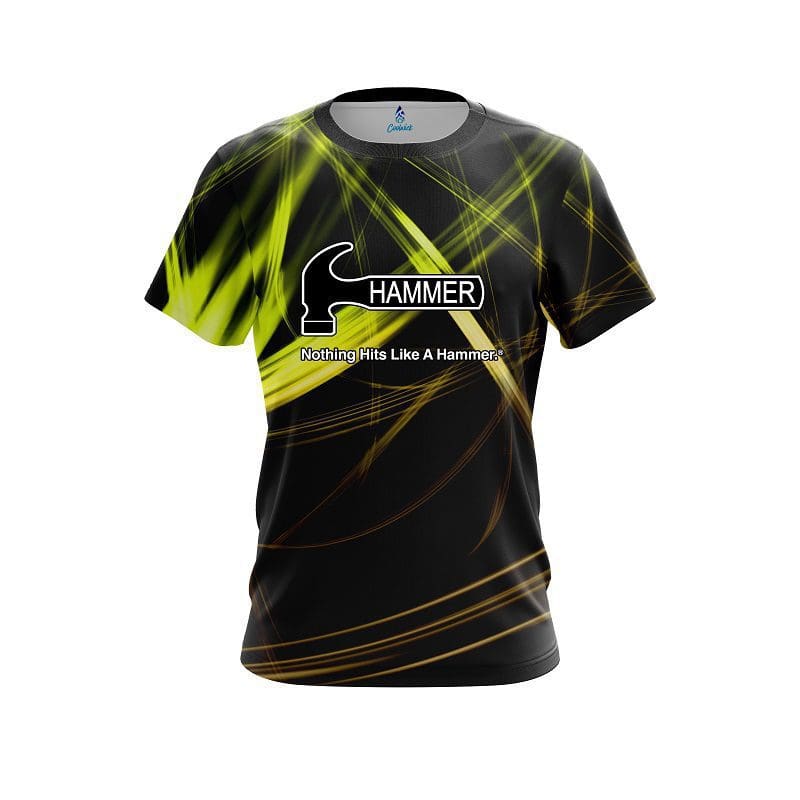 Stay 40% cooler with CoolWick. Our Hammer Yellow Spiral CoolWick Bowling Jerseys are made of two different fabrics with the back being our CoolWick technology fabric that helps wick moisture away and helps air flow more easily through the fibers.