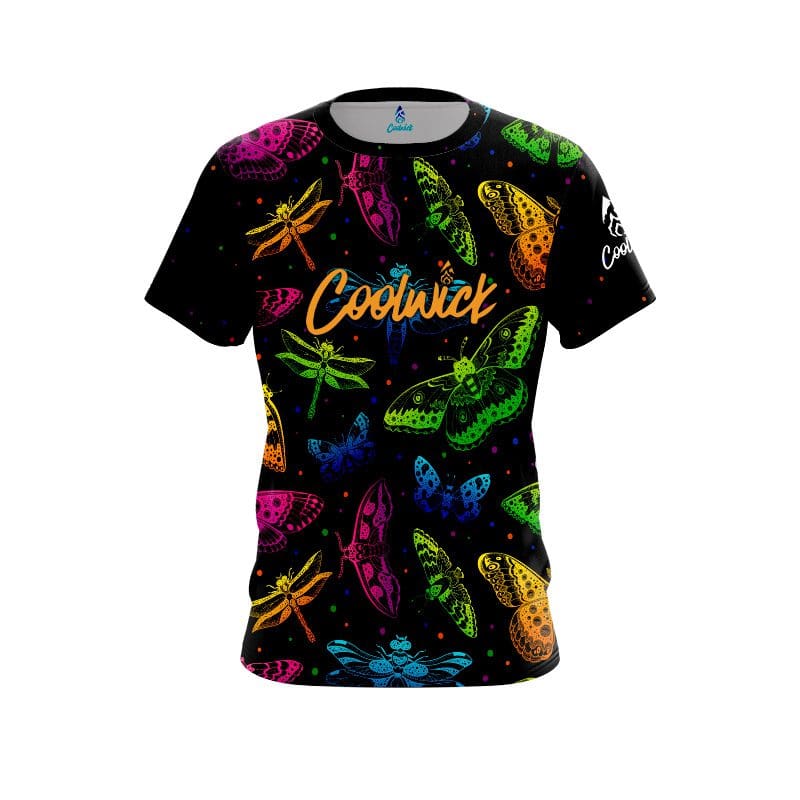 Designed, cut and sewn by hand stay 40% cooler with CoolWick. Our Harley Romedy Moths All Over CoolWick Bowling Jerseys are made of two different fabrics. The back being our CoolWick technology fabric that helps wick moisture away and helps air flow more easily through the fibers.