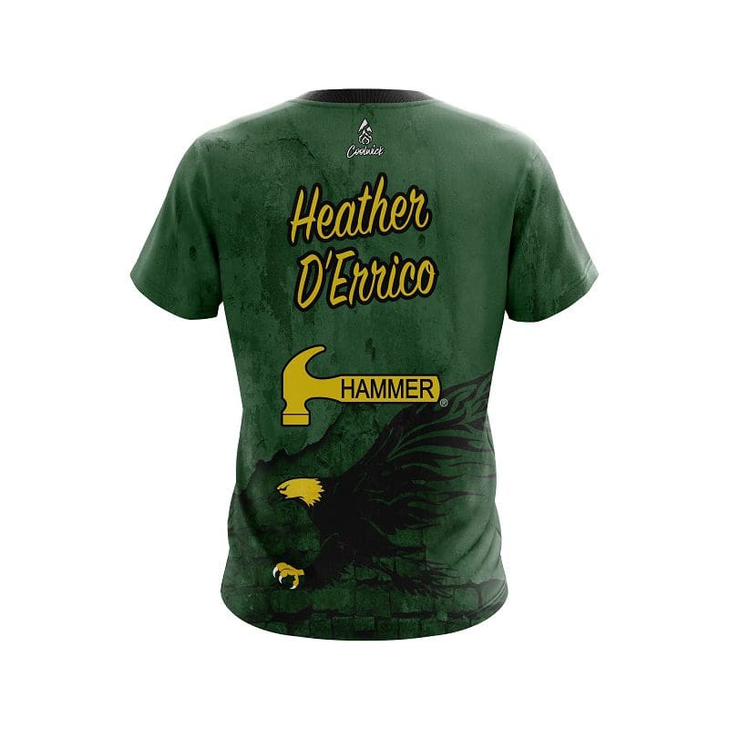 Designed, cut and sewn by hand stay 40% cooler with CoolWick. Our Heather D’Errico Hammer Brockport Replica CoolWick Bowling Jerseys are made of two different fabrics with the back being our CoolWick technology fabric that helps wick moisture away and helps air flow more easily through the fibers.