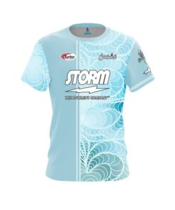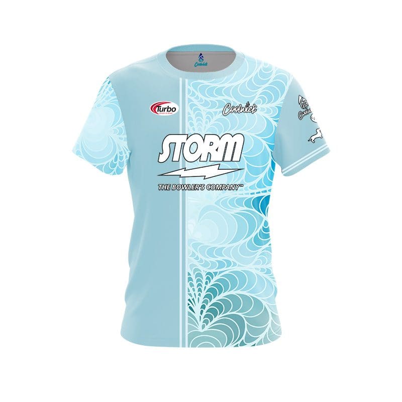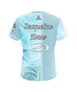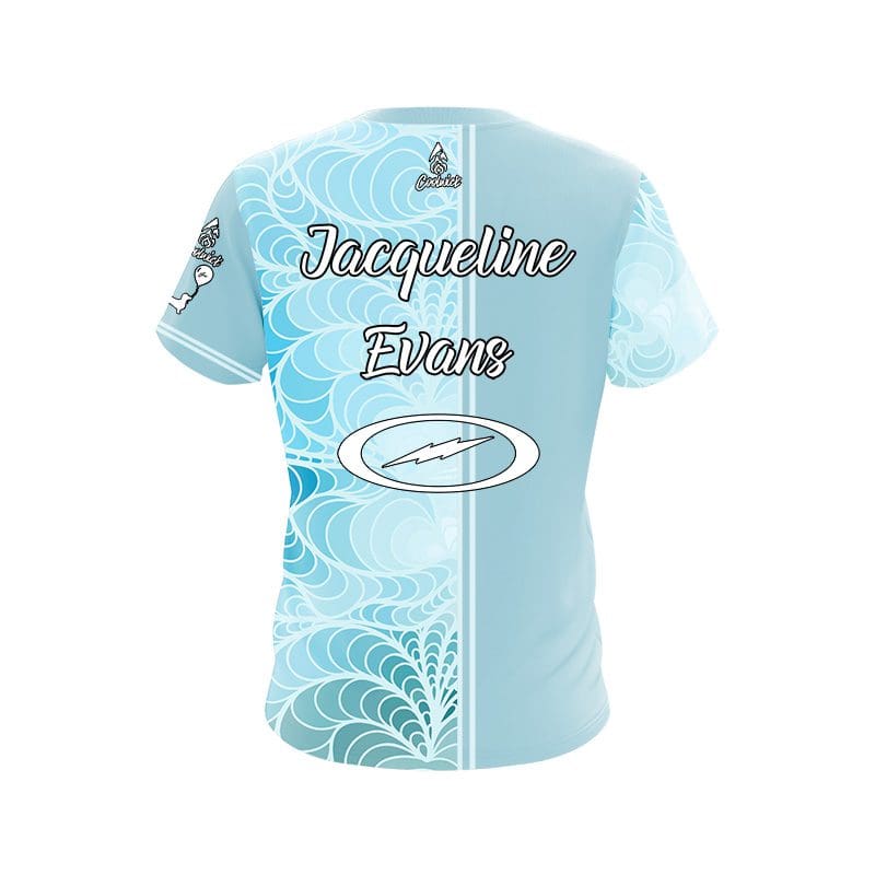 Stay 40% cooler with CoolWick. Our Jacqueline Evans Split Aqua Gradient CoolWick Bowling Jerseys are made of two different fabrics. The back being our CoolWick technology fabric that helps wick moisture away and helps air flow more easily through the fibers.